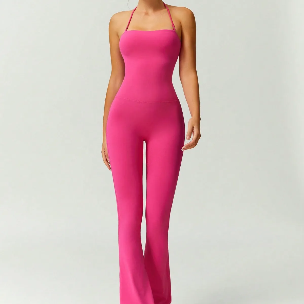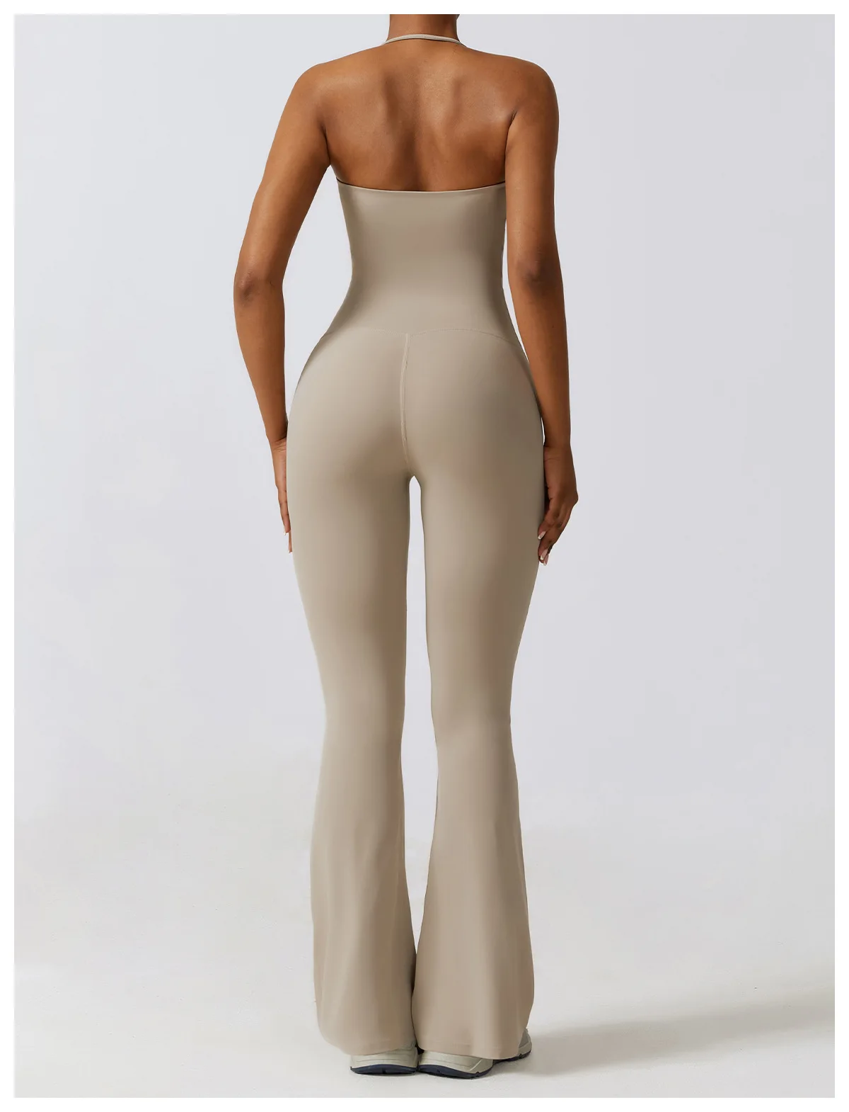 Gym Fitness Yoga Jumpsuit Workout Clothes Quick-drying Sportswear High Strength Halter Neck Flared Yoga Bodysuit